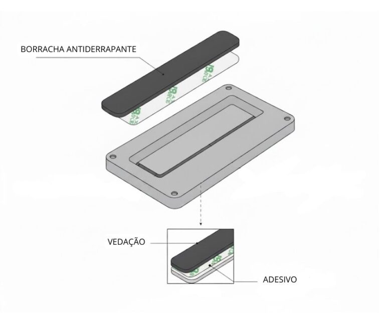 Componente de vedação e amortecimento com adesivo estrutural desenvolvidos para atender aos padrões das linhas de montagem e manutenção.