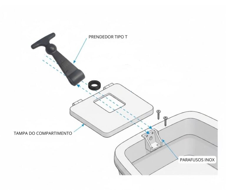 O fecho em material não corrosivo garante o travamento hermético de tampas e caixas, protegendo os componentes elétricos da névoa salina, umidade e vibrações constantes do mar.