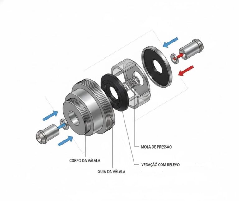 Diferente das válvulas comuns esta peça funciona como uma “porta de mão única” extremamente eficiente. Sua função é monitorar a diferença de pressão interna para garantir que o fluxo de gases ou fluidos seja unidirecional.